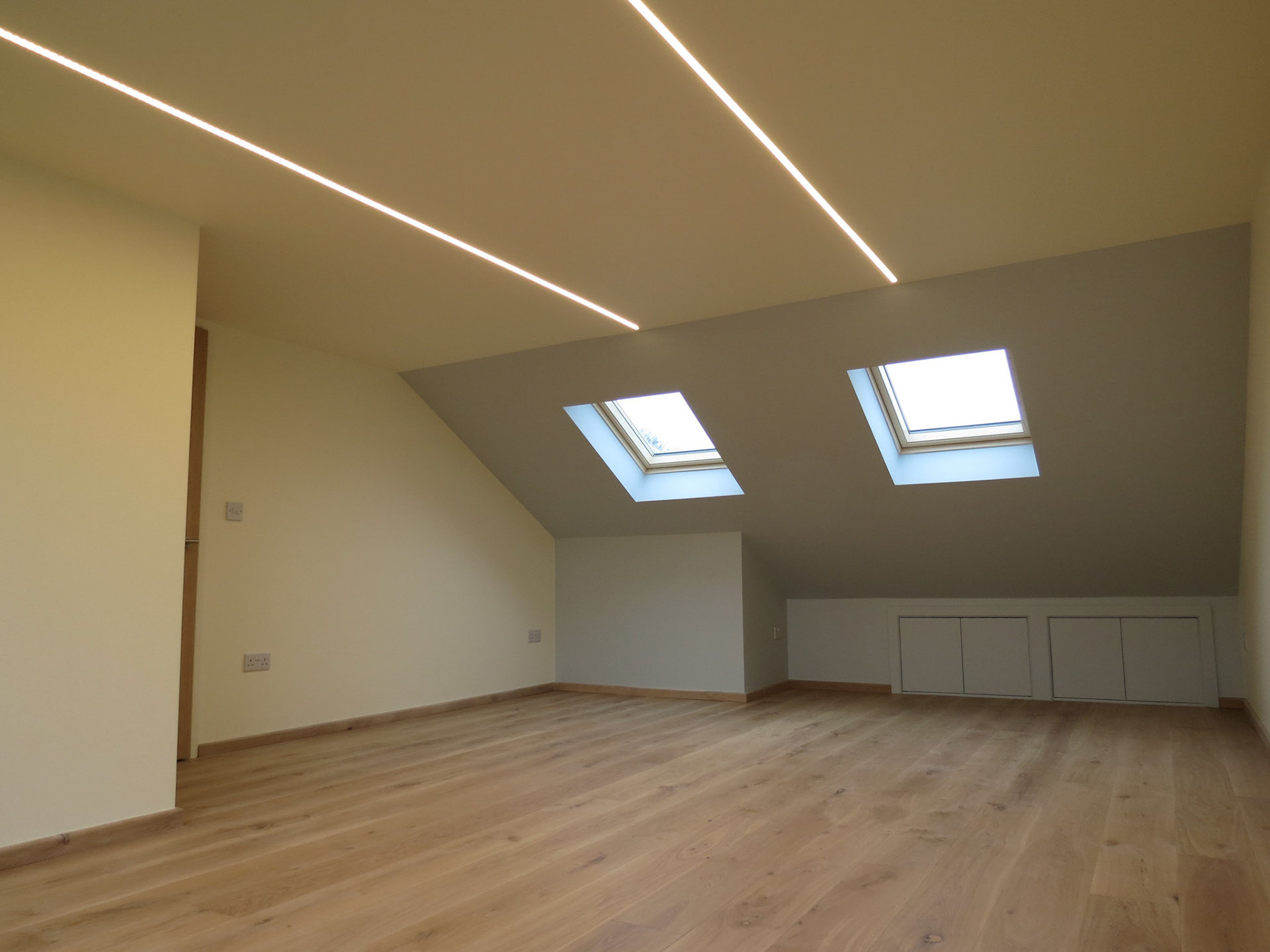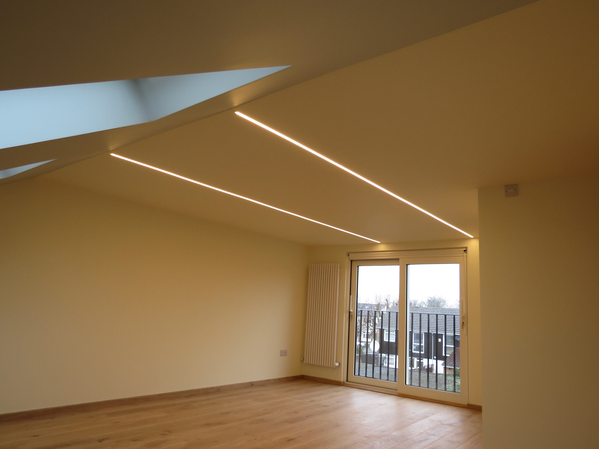 Loft Conversion Glorious 1970s property in East London required our services to "push the walls" and ceiling with a fabulous mission to optimising natural light and enhance the different spaces with designers' lights.